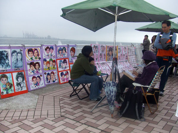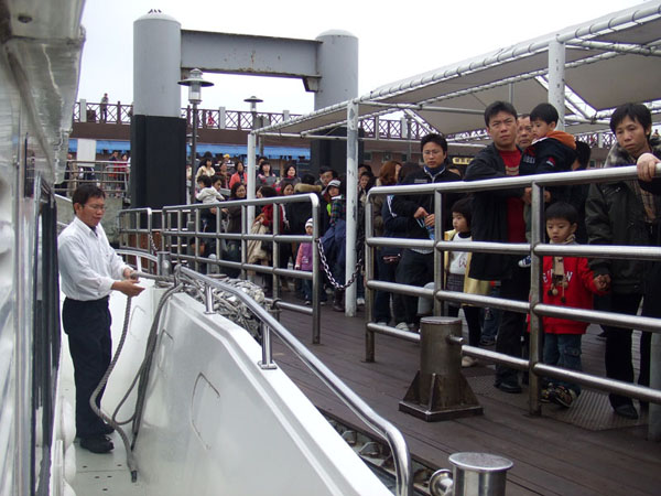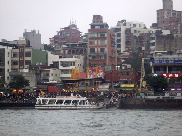 沿著岸邊跟著人潮慢慢走到渡船頭