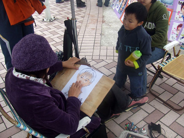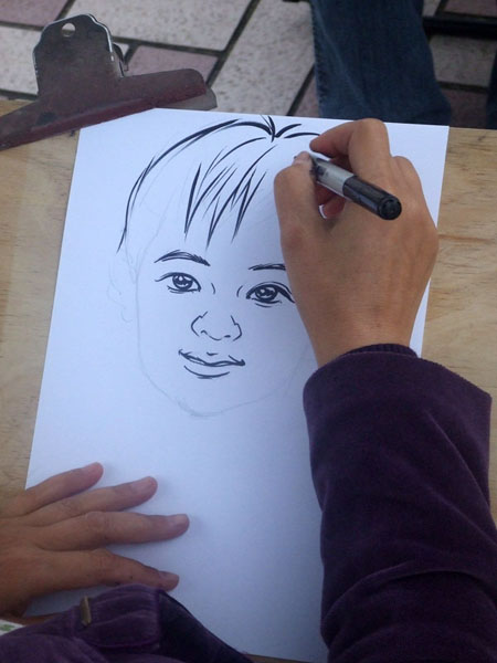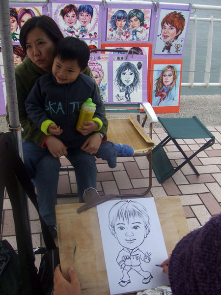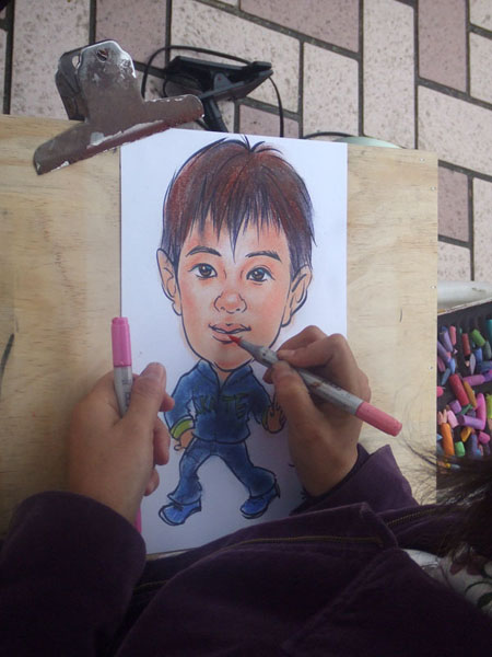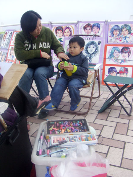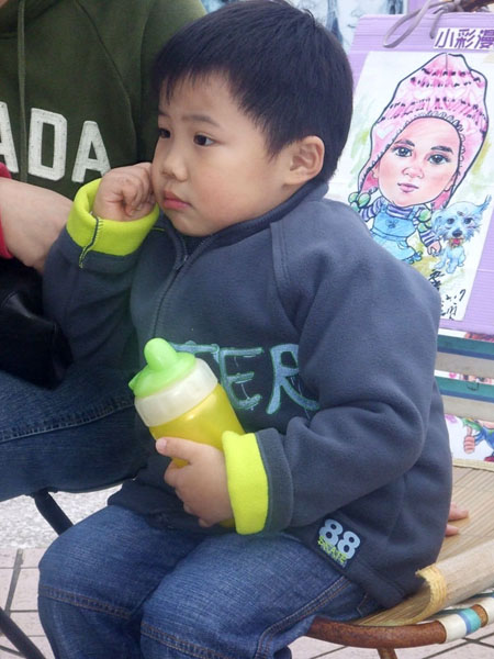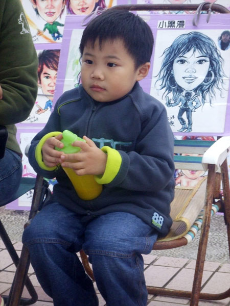 畫家上色中,坐不住的小鬼忍不住要看畫家在做什....
