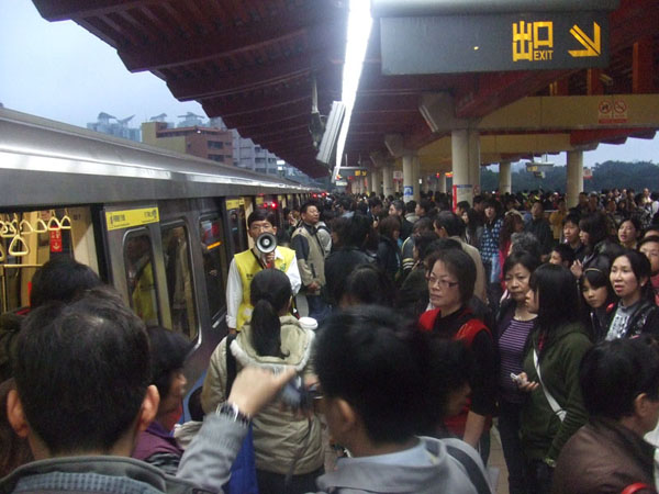 這是淡水-八里間的渡船頭,等待的隊伍人龍也是比長的.....