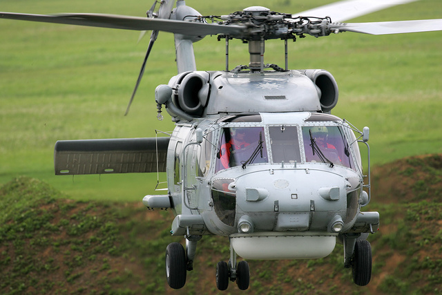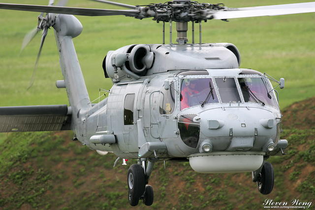 演練反潛直昇機在海上的各種動作,有別於空軍救護隊S-70C的展示科目