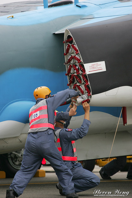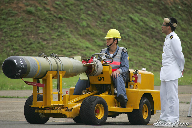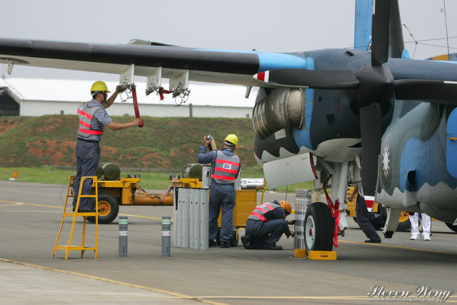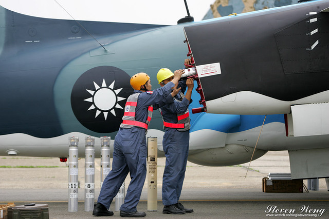 這畫面引起在場航空迷的騷動,以往的海軍航空基地開放或是歷年的軍事媒體參訪都沒公開展示過S-2T的戰備裝掛過程,這次近距離的讓大家可以親眼目睹整個S-2T裝掛的過程,這趟基地開放算是沒白跑了!也狂殺航空迷的記憶卡!
