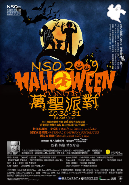一年一度的NSO萬聖派對又來囉!10月30日~31日NSO將以兩場《萬聖派對》音樂會邀請大小朋友一起來國家音樂廳扮裝搞怪。執掌柏林「歐洲電影愛樂」藝術總監的法蘭克‧史卓貝(FRANK STROBEL)將以一連串經典的好萊塢驚魂電影配樂,帶領大家進入充滿黑色幽默的驚異音樂之旅。